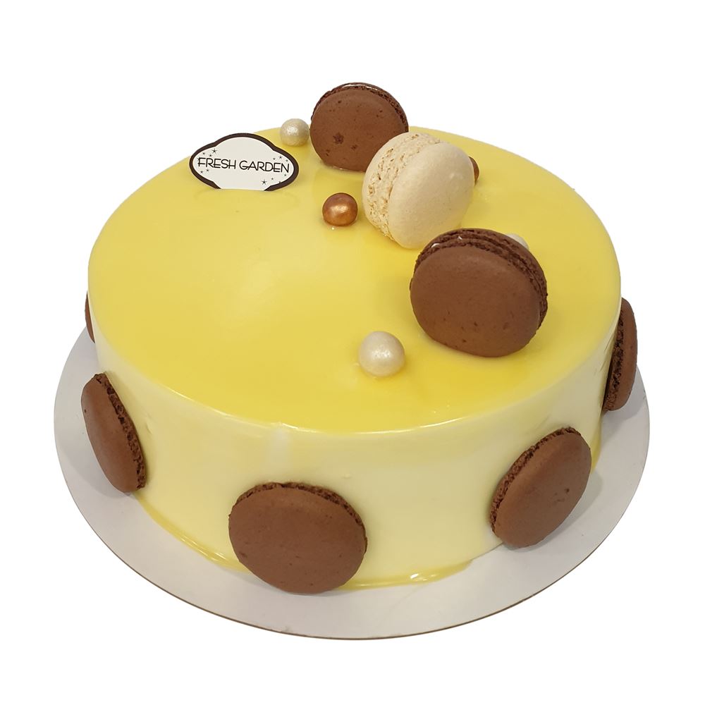 Thành phần sử dụng gồm có: Trứng, sữa, bơ, đường, vani, Bột làm bánh, kem chanh dây, bánh Macaron, Socola viên tròn.